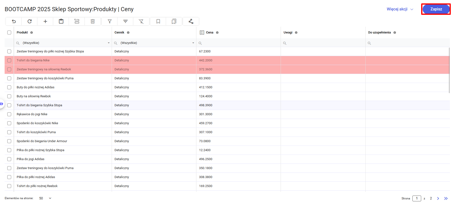 Aplikacja Comarch Data Editor umożliwia usuwanie wybranego wiersza. Aby skorzystać z funkcji usuwania wierszy należy zaznaczyć dany wiersz/wiersze i następnie w przycisk