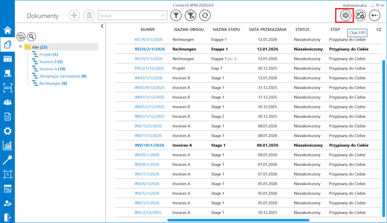 Korzystanie z ChatERP w aplikacji desktop Comarch BPM (dawniej DMS)