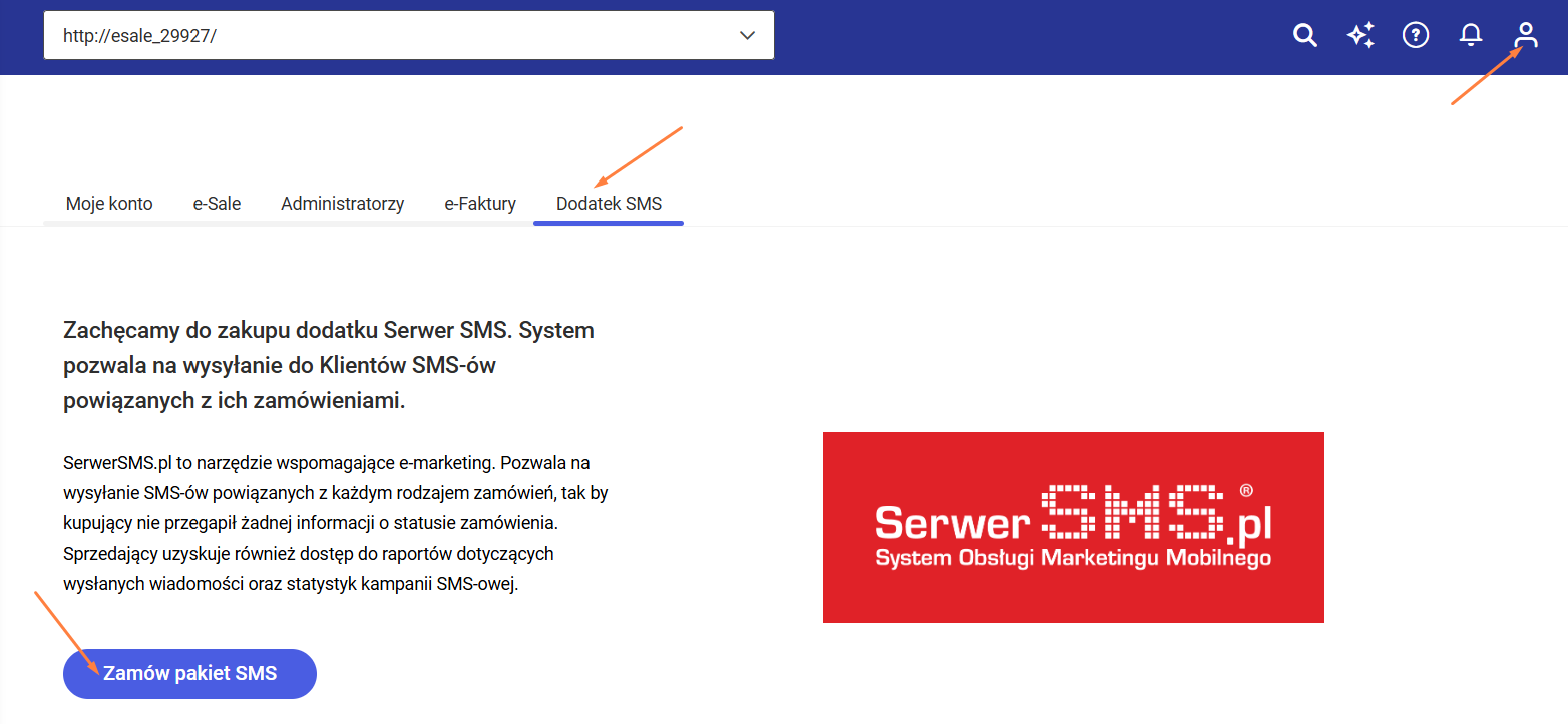 Krok 1. W panelu administracyjnym przejdź do sekcji Mój profil > Dodatek SMS > Zamów pakiet SMS: