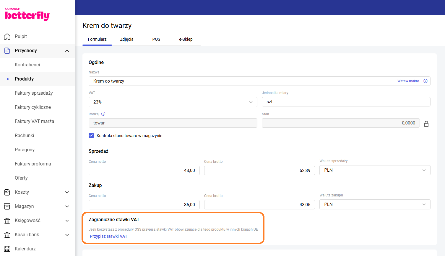 Krok 2. Stawka VAT dla produktu została zaktualizowana.