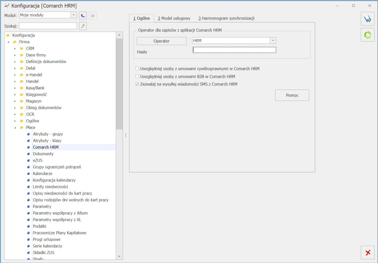 - uruchomić usługę wysyłki SMS w systemie Comarch ERP Optima / XL HR / Altum HR (szczegóły tutaj),