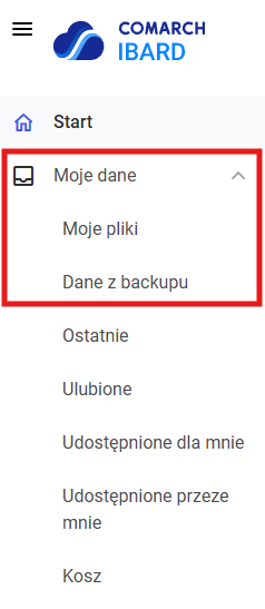 W usłudze Comarch IBARD użytkownik może pobrać swoje dane znajdujące się w wymienionych obszarach w zakładce Moje dane: