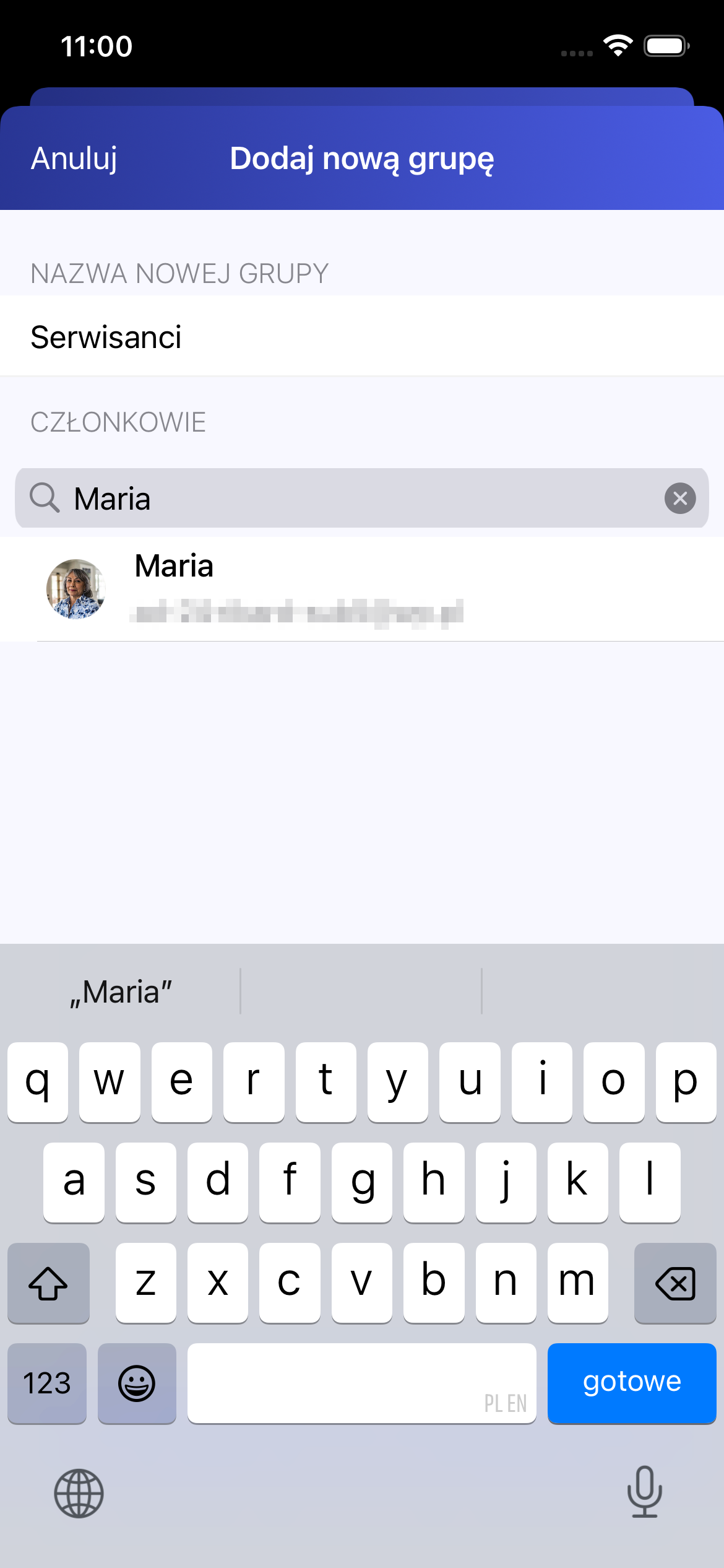 Do każdej nowej grupy automatycznie dodawany jest administrator usługi.