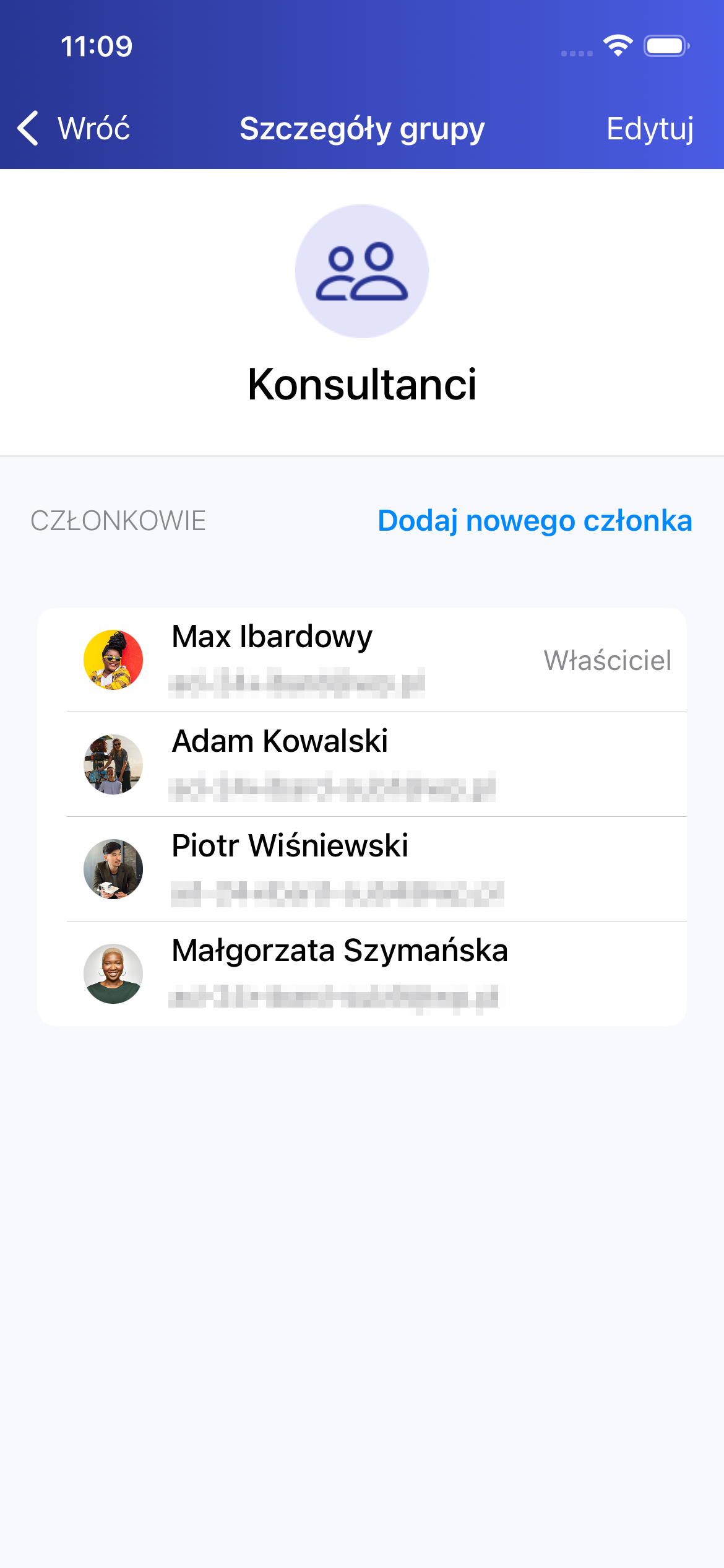W widoku szczegółów możliwe jest również bezpośrednie dodanie nowego członka do grupy za pomocą przycisku „Dodaj nowego użytkownika” (Rysunek 52).