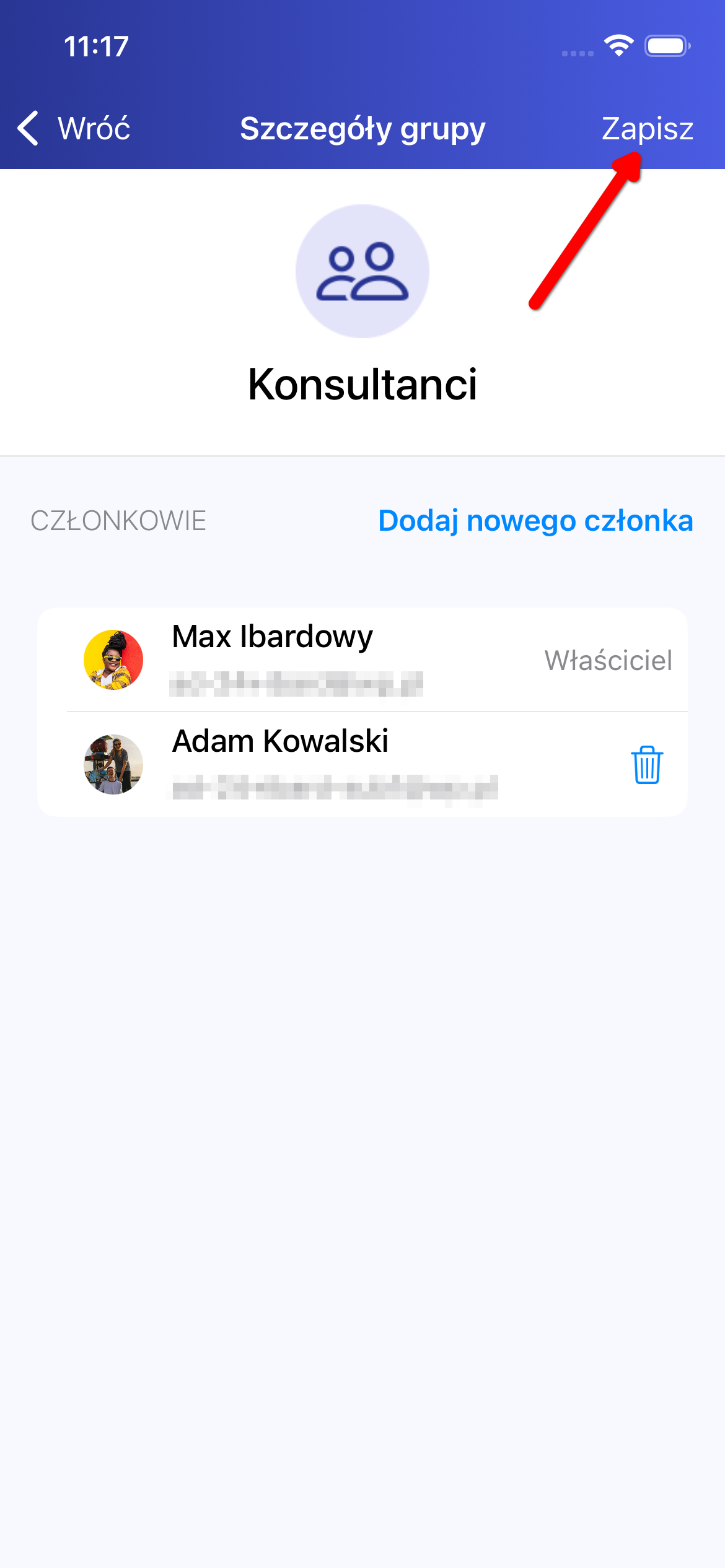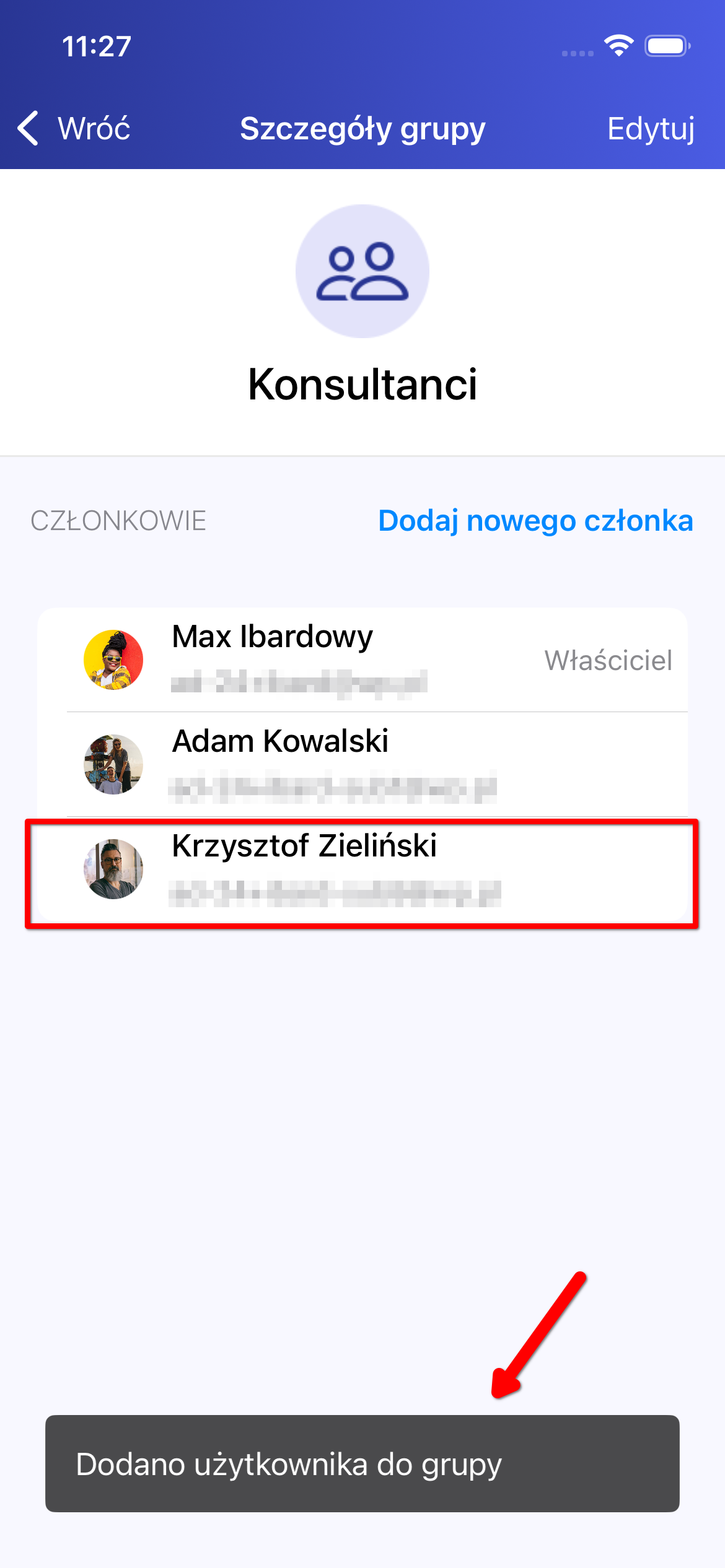 Lista członków grupy zostanie zaktualizowana, o czym poinformuje odpowiedni komunikat (Rysunek 56).