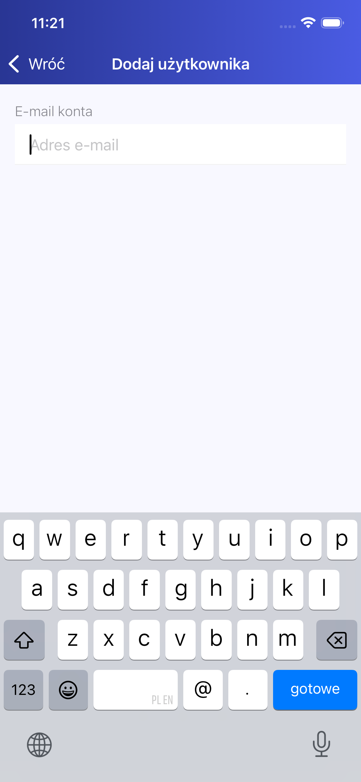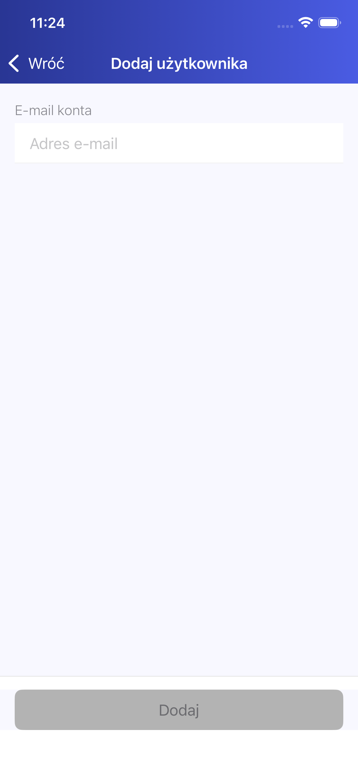 Zostanie wyświetlone okno, w którym należy podać adres e-mail zapraszanego użytkownika. Przycisk „Dodaj” pozostanie nieaktywny do momentu wprowadzenia poprawnego formatu adresu (Rysunek 53).