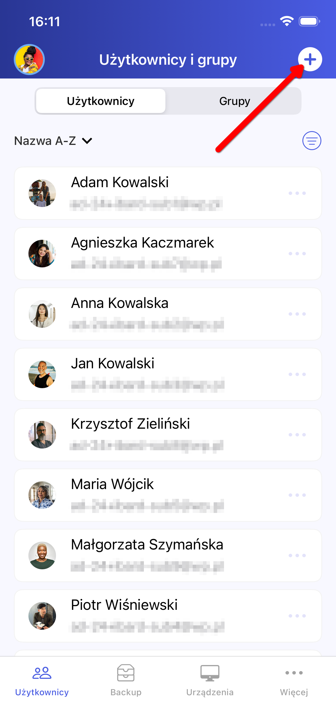 Aby dodać nowego użytkownika, należy skorzystać z przycisku „+” widocznego w pasku nawigacji (Rysunek 4):