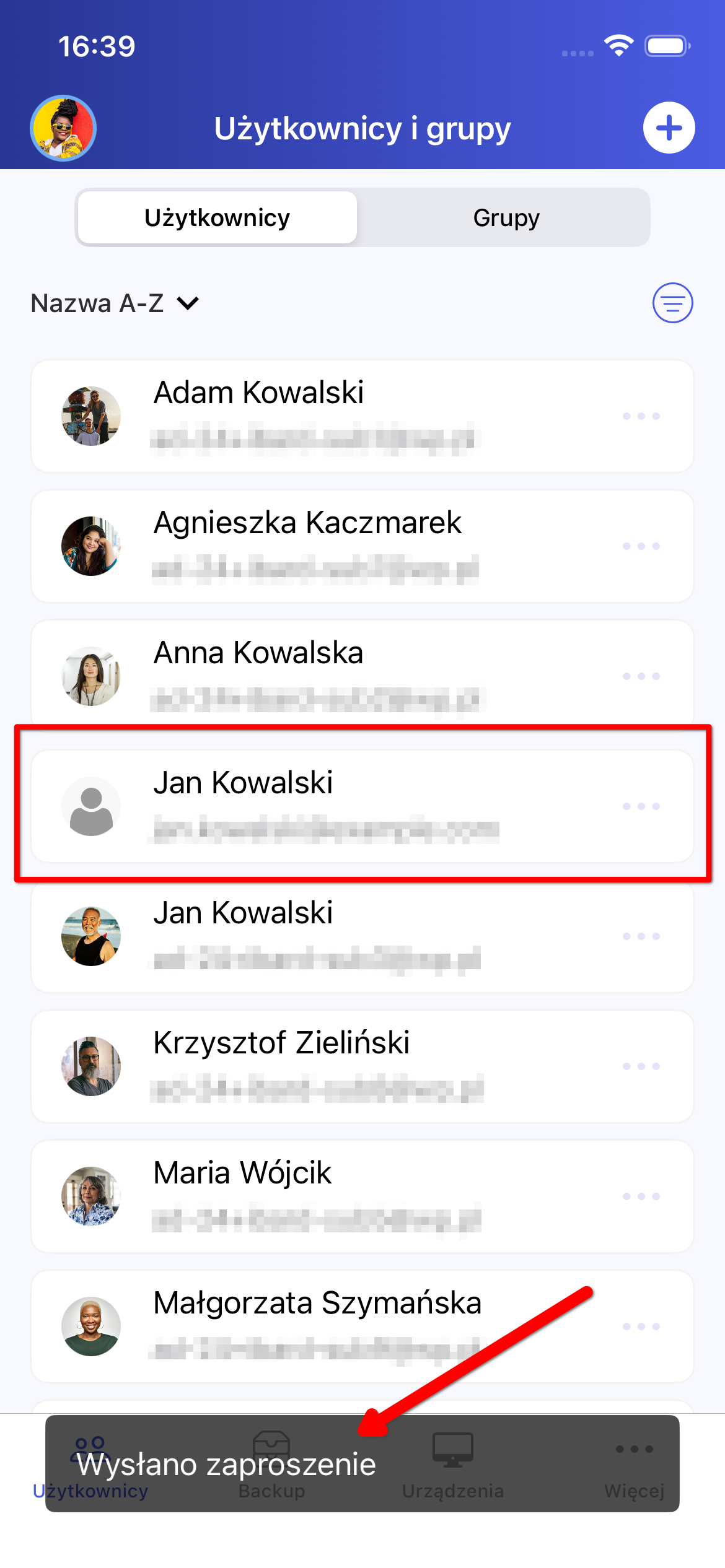 Po wykonaniu tej czynności pojawi się komunikat potwierdzający, a użytkownik zostanie dodany do listy w usłudze (Rysunek 8).