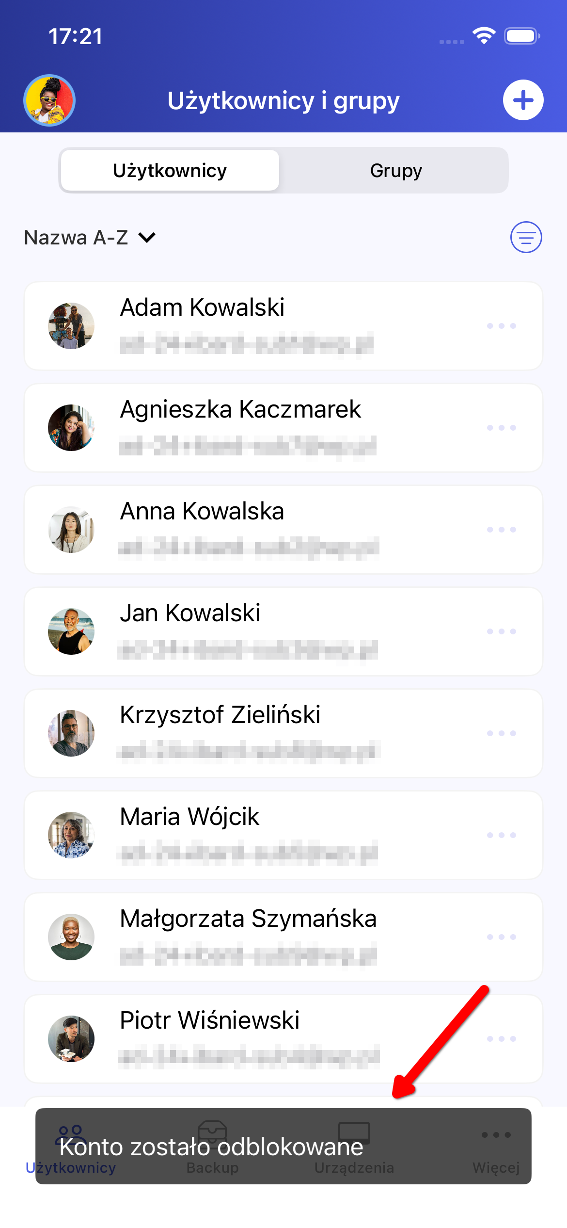 Po kliknięciu w tę pozycję użytkownik zostanie odblokowany w usłudze, a na ekranie pojawi się stosowne powiadomienie (Rysunek 20).