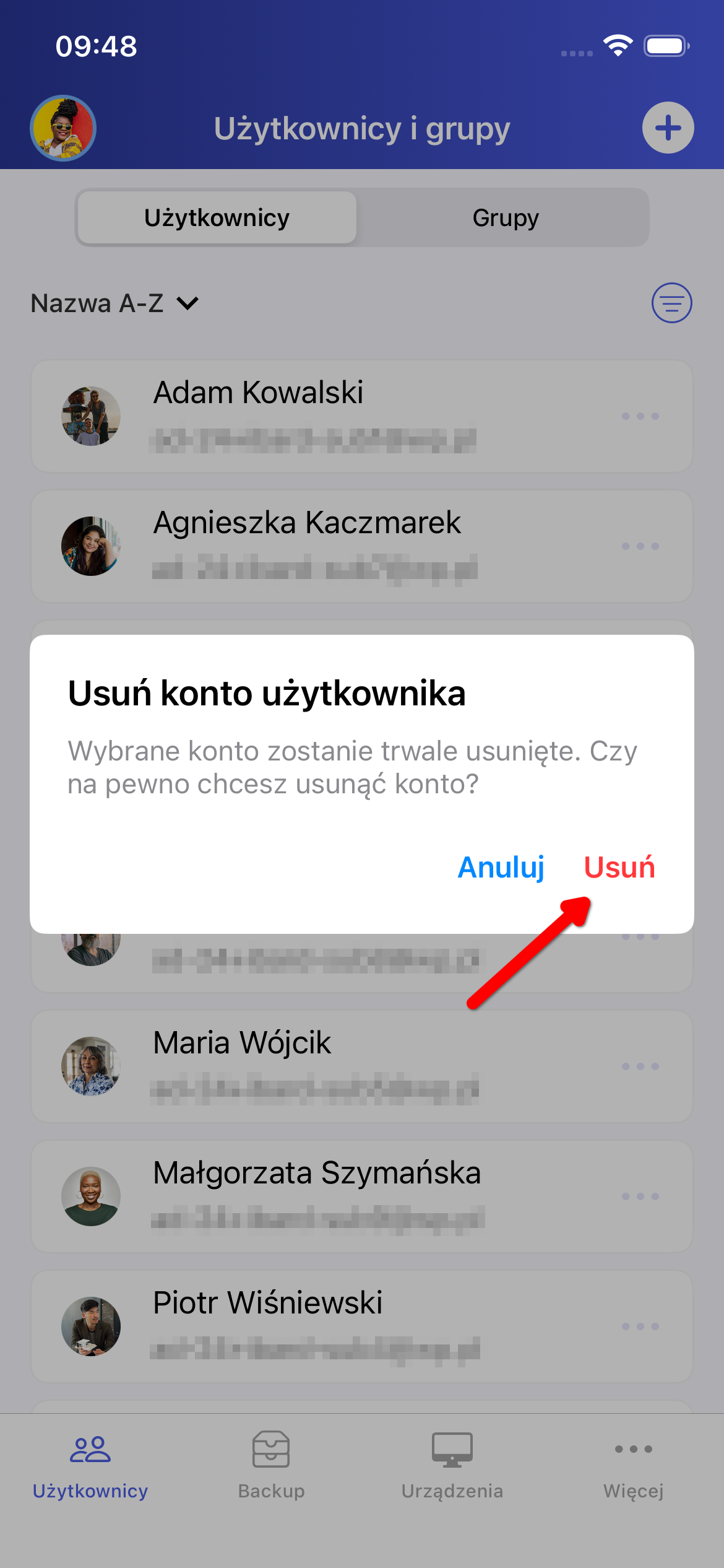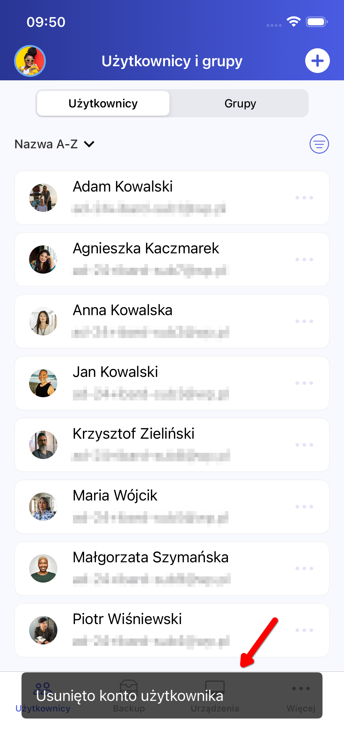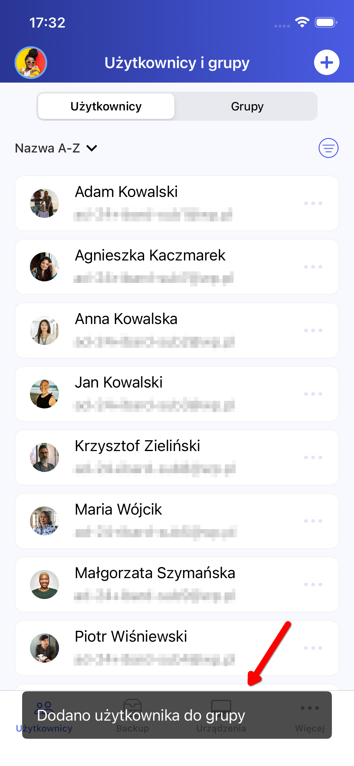 W celu przełączenia się między listą użytkowników a listą grup należy skorzystać z przełącznika segmentowego znajdującego się w górnej części widoku (Rysunek 2).