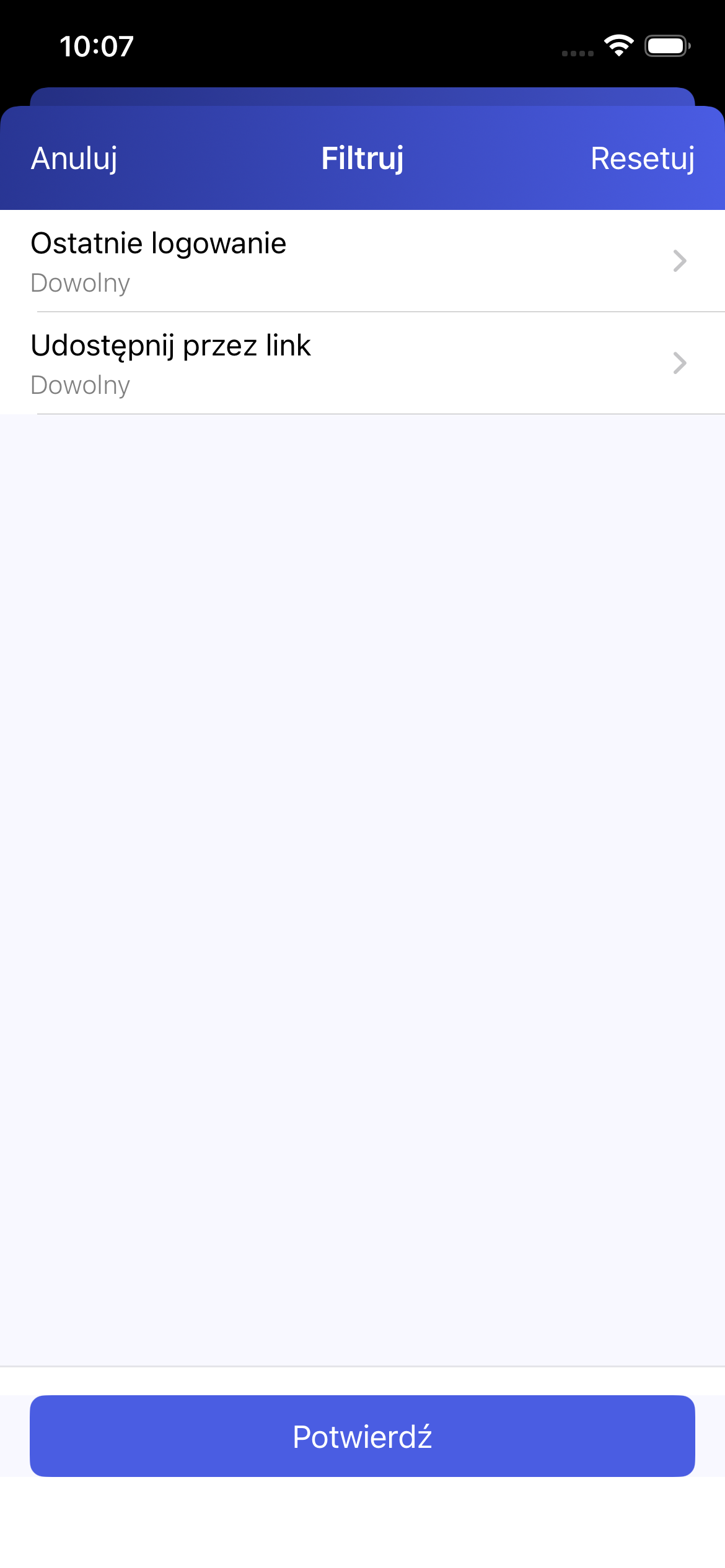 W nowym widoku należy wybrać interesujący rodzaj filtra: „Ostatnie logowanie” lub „Udostępnianie przez link”. W celu ustalenia szczegółowych kryteriów należy kliknąć w odpowiednią kategorię (Rysunek 30).