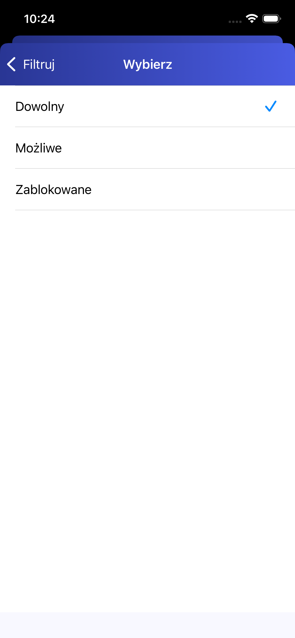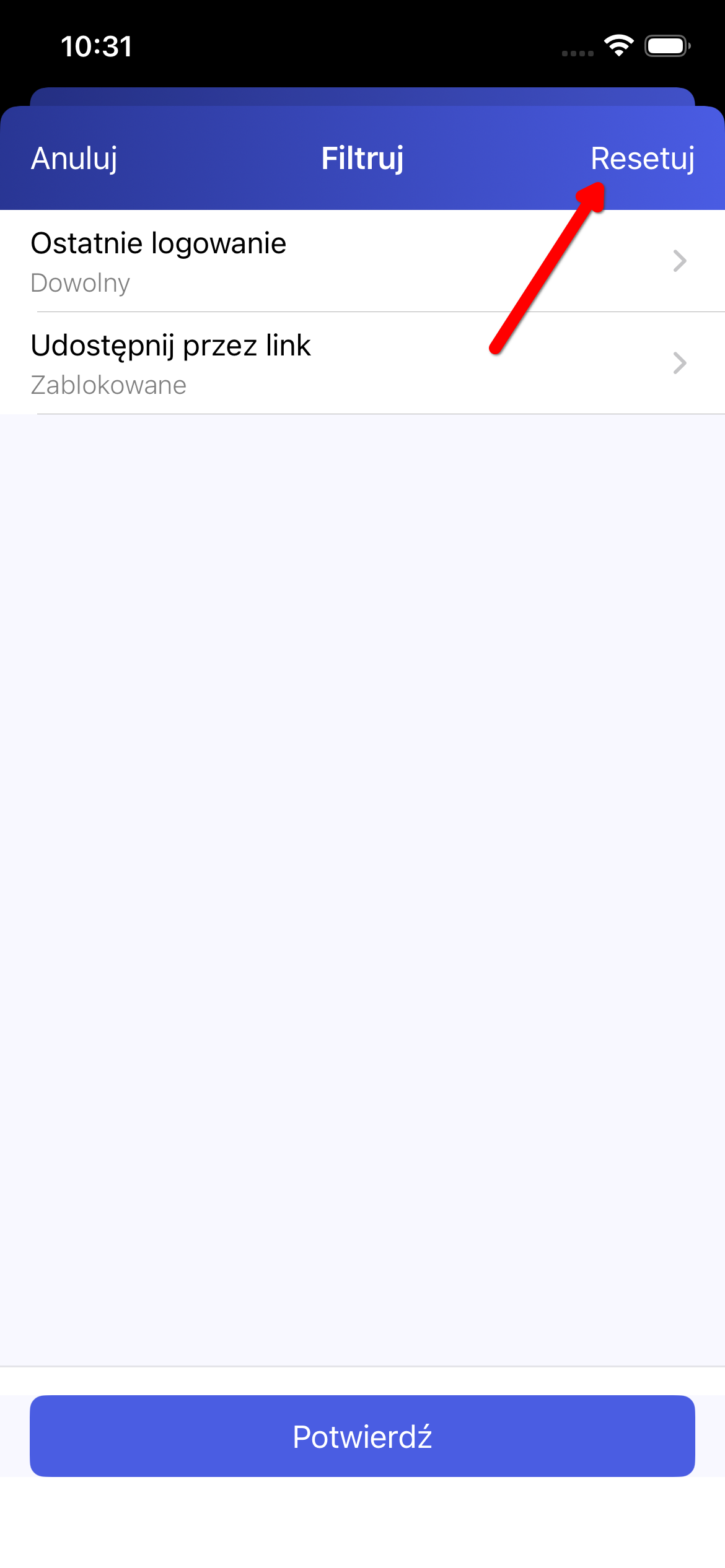 Po dokonaniu wyboru nastąpi powrót do poprzedniego ekranu. Aby zastosować filtry, należy kliknąć w przycisk „Potwierdź” (Rysunek 33).