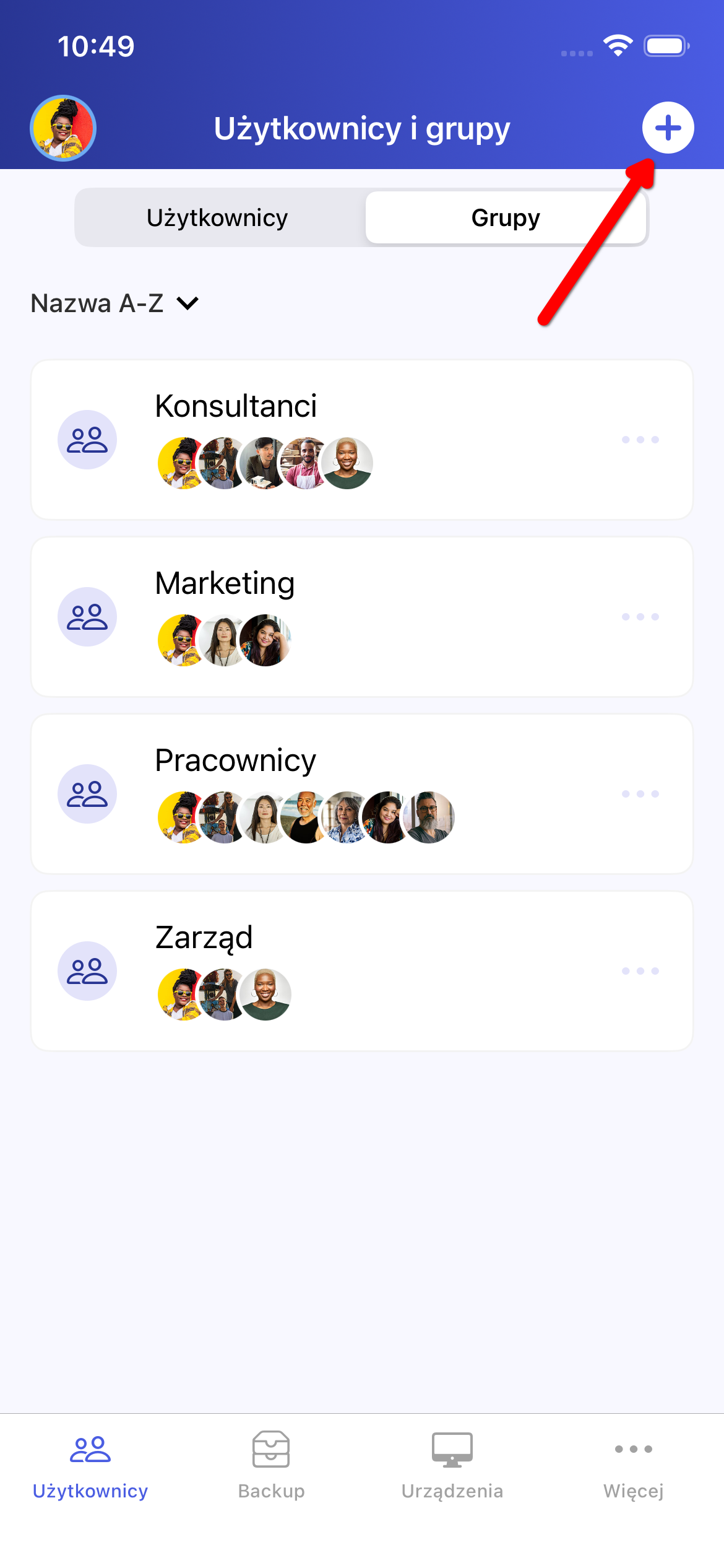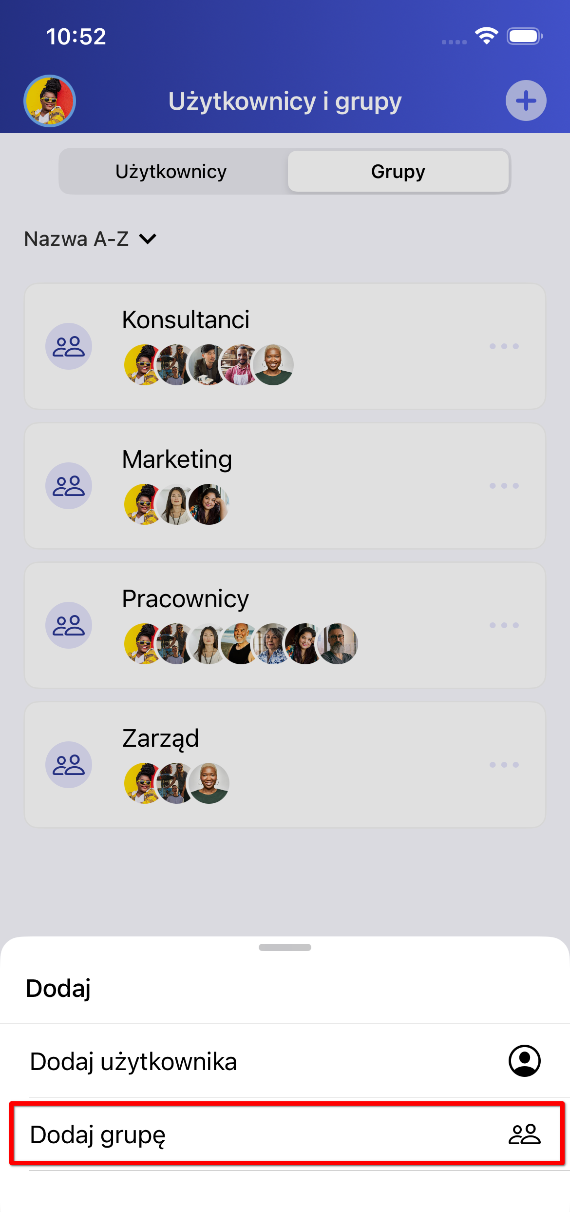 Aby dodać nową grupę, należy skorzystać z przycisku „+” widocznego w pasku nawigacji (Rysunek 38):