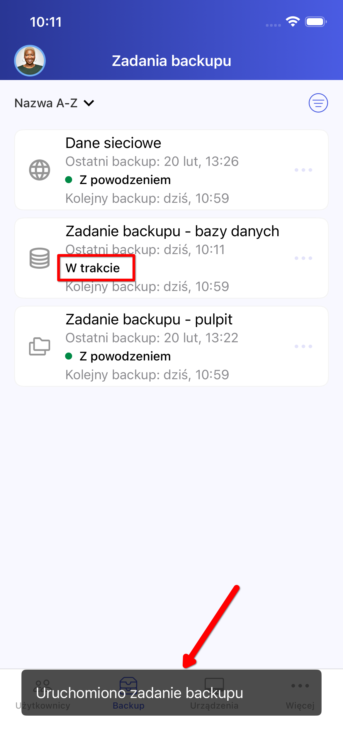 Uruchamianie zadania backupu