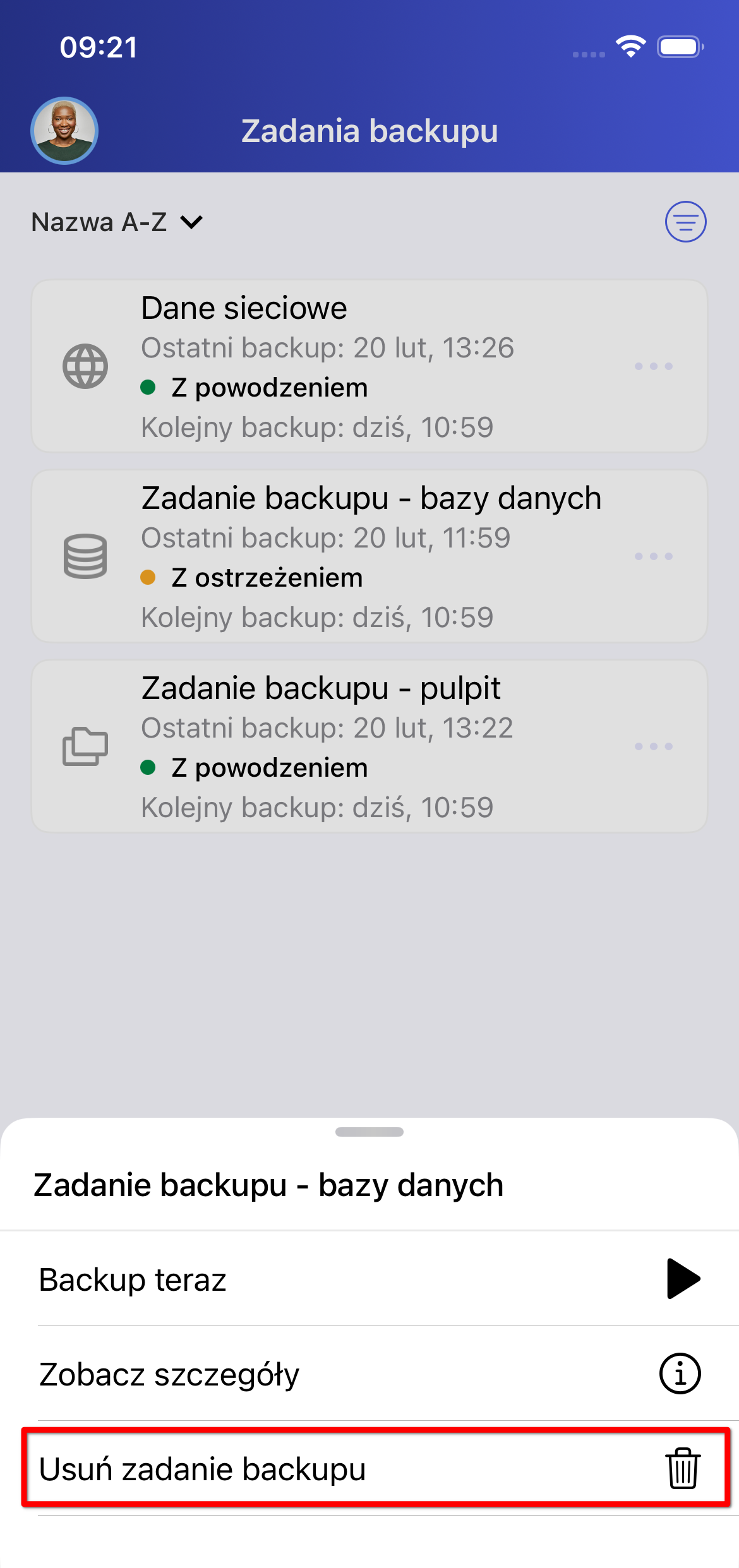 Rysunek 10. Opcja „Usuń zadanie backupu”.