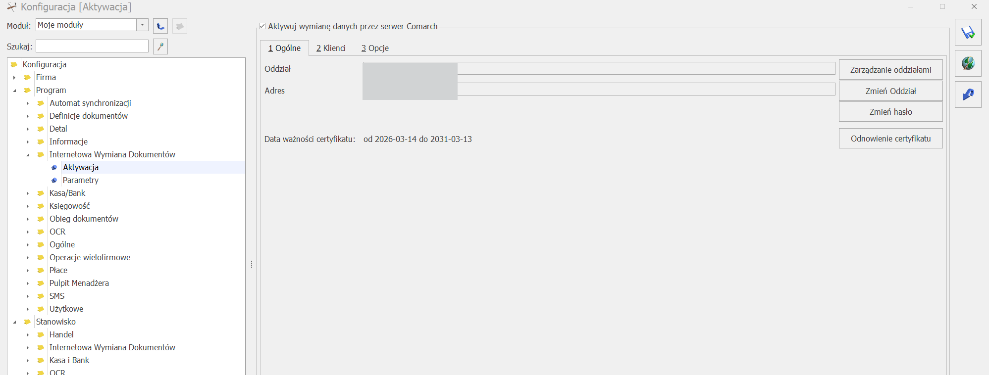 Start -> Konfiguracja -> Program -> Internetowa Wymiana Dokumentów -> Aktywacja -> Zarządzanie oddziałami