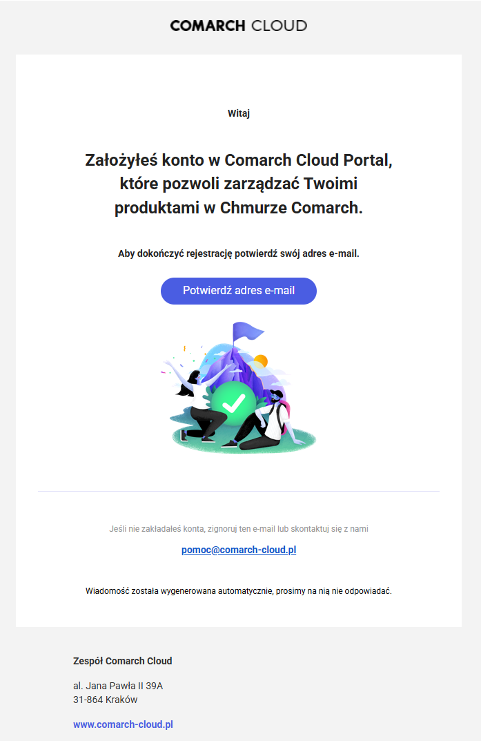 Szukaj wiadomości od „Comarch Cloud” z tematem „Potwierdź adres e-mail”.