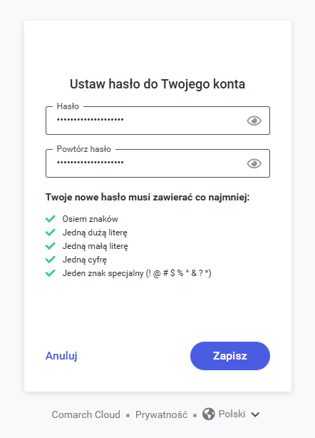 - E-mail: To będzie Twój główny identyfikator w Comarch Cloud.