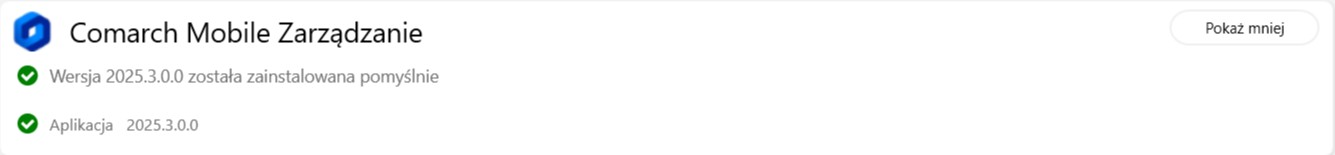 Zostaną zainstalowane komponenty potrzebne do prawidłowej współpracy Comarch Mobile Zarządzanie z systemem ERP. Po skończonej instalacji pojawi się poniższa informacja w oknie głównym aplikacji Comarch ERP Auto Update.