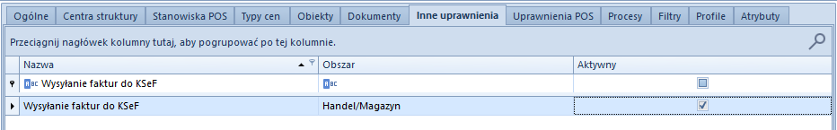 3. Na formularzu grupy operatorów Konfiguracja/Grupy operatorów w zakładce Inne uprawnienia zaznaczyć parametr Wysyłanie faktur do KSeF.
