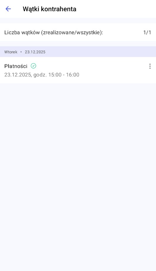 Podgląd szczegółów kontaktuLista wątków kontrahenta