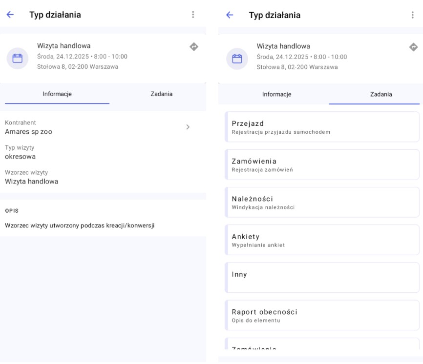 Realizacja wizyty handlowej ogranicza się obecnie do podglądu jej szczegółów oraz weryfikacji zadań do wykonania.