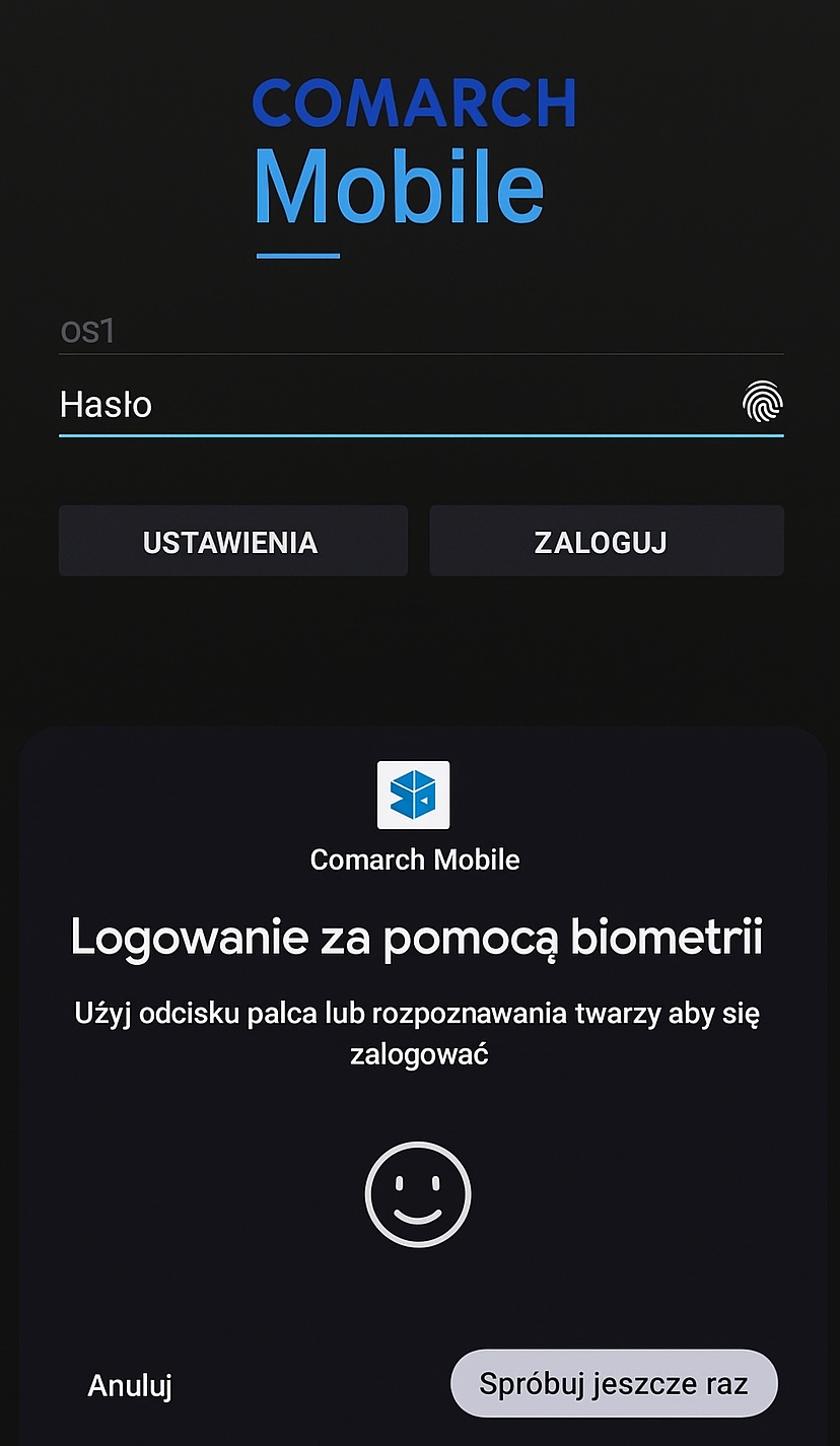 W aplikacji Comarch Mobile istnieje również możliwość logowania za pomocą danych biometrycznych. Funkcjonalność logowania biometrycznego należy włączyć w ustawieniach aplikacji. Więcej informacji na ten temat znajduje się TUTAJ.