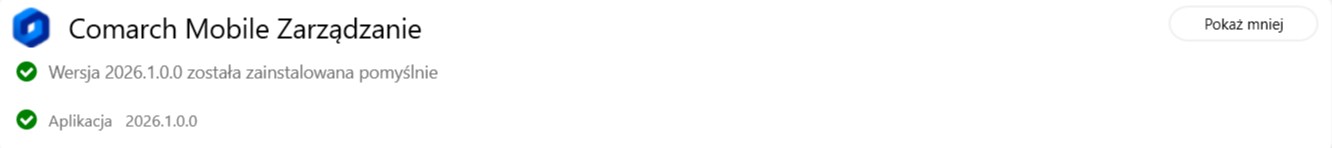 Zostaną zainstalowane komponenty potrzebne do prawidłowej współpracy Comarch Mobile Zarządzanie z systemem ERP. Po skończonej instalacji pojawi się poniższa informacja w oknie głównym aplikacji Comarch ERP Auto Update.
