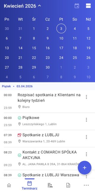 Zaplanowane Zadanie widoczne w Terminarzu