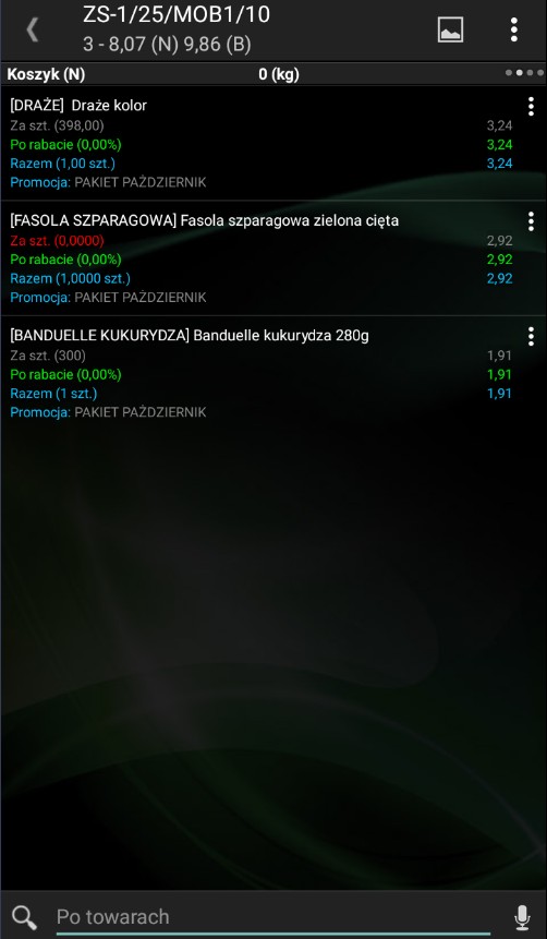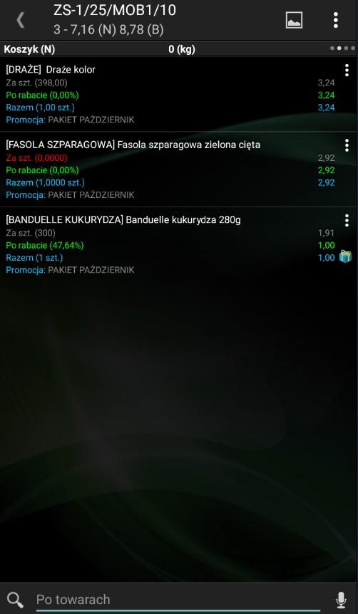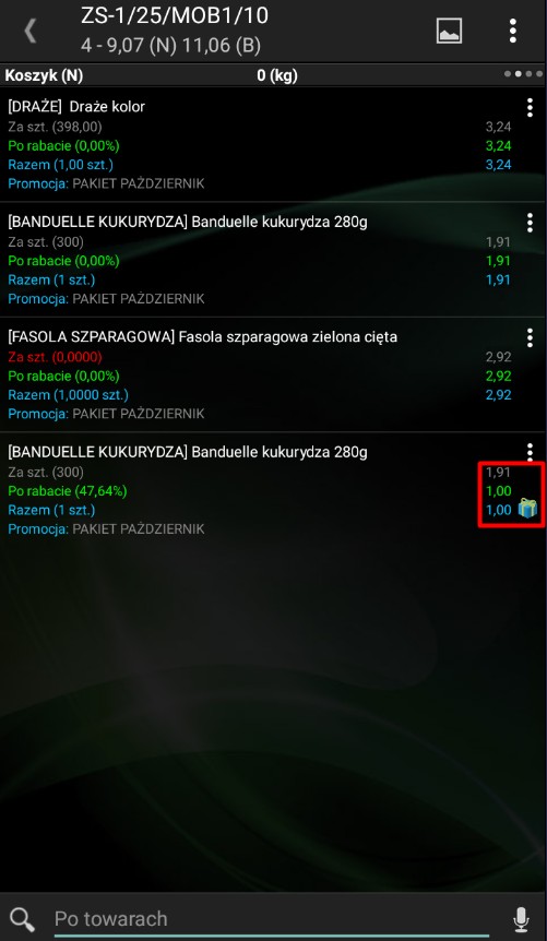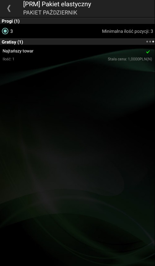 W aplikacji Comarch Mobile wprowadzono obsługę nowego typu gratisu w ramach promocji pakietowej elastycznej: Najtańszy towar w pakiecie. Funkcjonalność ta automatycznie identyfikuje i przyznaje zniżkę na najtańszy towar wchodzący w skład spełnionego pakietu promocyjnego.