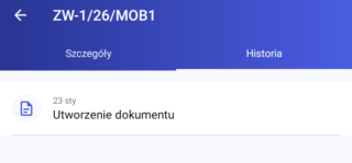 W zakładce Historia prezentowana jest lista operacji wykonanych na wybranym dokumencie.