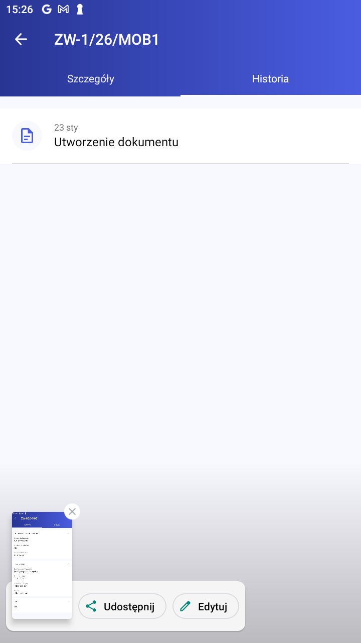 W zakładce Historia prezentowana jest lista operacji wykonanych na wybranym dokumencie.