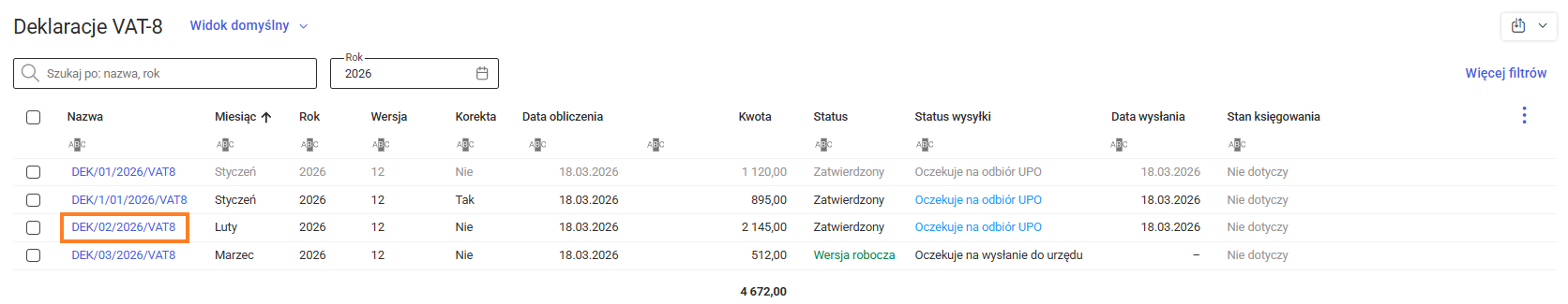 Aby podejrzeć zawartość i szczegóły deklaracji VAT-8, należy wykonać następujące kroki: