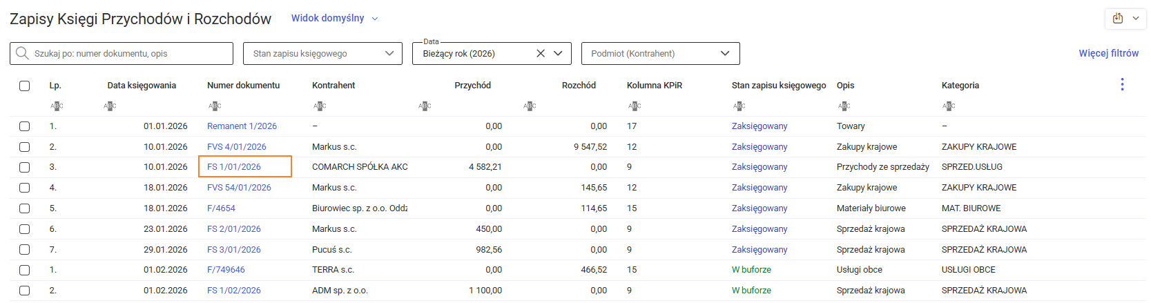 Jak otworzyć podgląd zapisu księgowego z listy zapisów KPiR ? Kategoria Księga podatkowa Utworzony 23 marca 2026 Aby otworzyć podgląd zapisu księgowego, należy kliknąć jego numer na liście zapisów KPiR. Czy ten artykuł był pomocny? Wyślij opinie