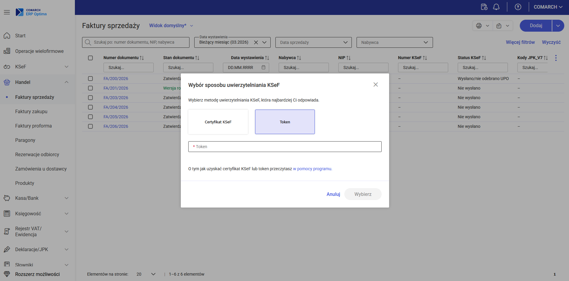 - Wklejeniu w polu Token unikalnego ciągu znaków wygenerowanego wcześniej w aplikacji KSeF (na stronie Ministerstwa Finansów).