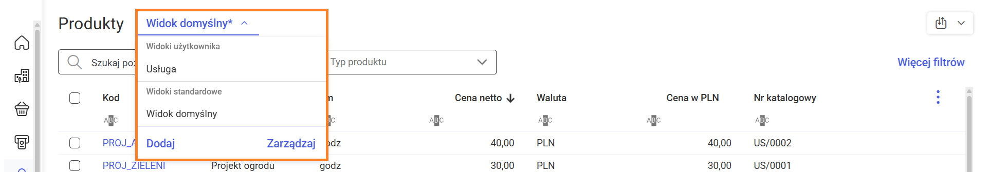 Program umożliwia tworzyć własne widoki, które będą dostępne jako dodatkowe opcje wyboru obok widoku domyślnego. Dostosowanie widoku będzie możliwe z poziomu nagłówka listy, poprzez wskazanie jednego ze zdefiniowanych widoków dostępnych na liście rozwijanej.