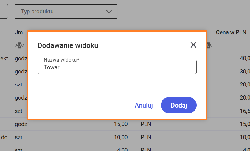 Dodanie nowego widoku możliwe jest za pomocą opcji Dodaj.