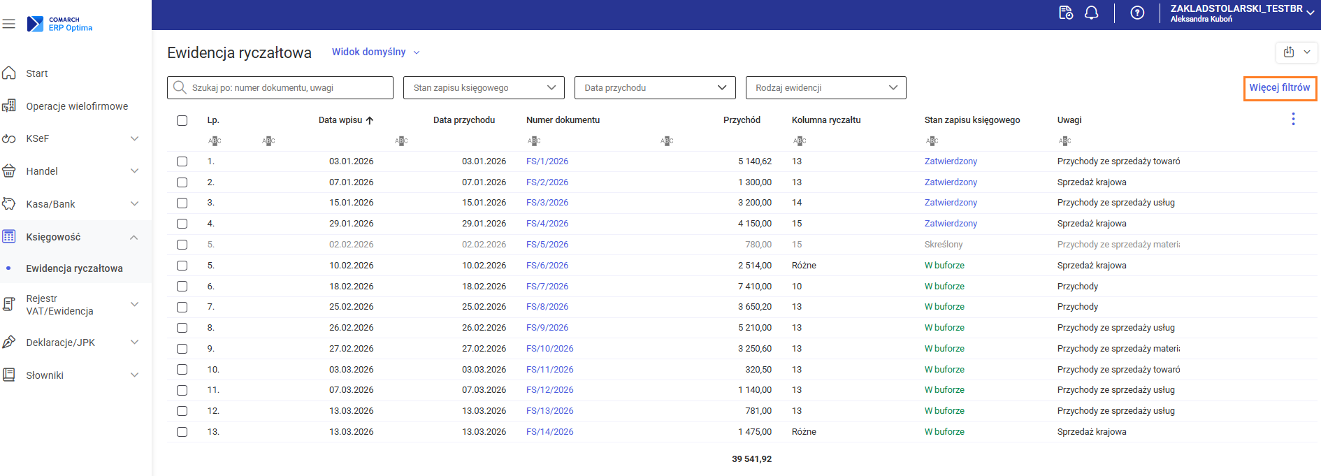 • Stan zapisu księgowego- określa aktualny status zapisu księgowego i może przyjmować wartości: W buforze, Zaksięgowany lub Skreślony