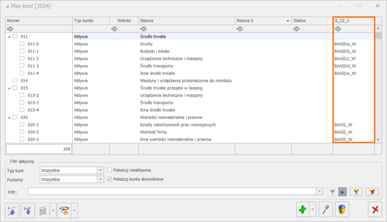 Znaczniki S_12_1 oraz S_12_2 dotyczą przyporządkowania konta do zestawienia księgowego: Bilansu i Rachunku zysków i strat. Znacznik S_12_3 dotyczy przyporządkowania konta do wyliczenia zestawienia na podatek dochodowy.