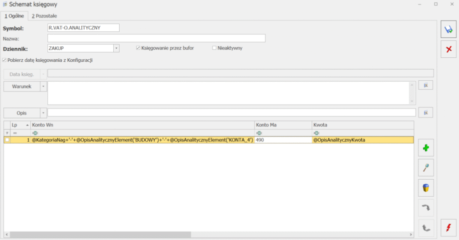 W pozycji Kwota należy wybrać opcję Opis analityczny – Kwota opisu – @OpisAnalitycznyKwota