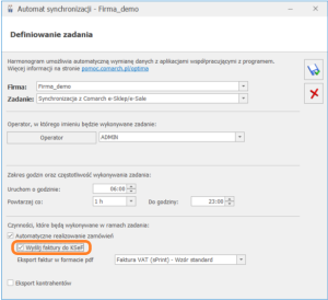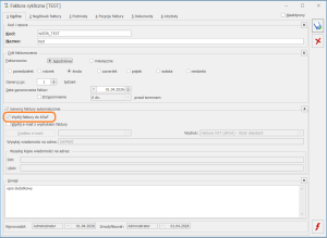 Parametry dotyczące danych przesyłanych do KSeF zostaną automatycznie zaznaczone zgodnie z dotychczasowym, automatycznym działaniem systemu. Dzięki temu standardowa wysyłka faktur nie ulegnie zmianie bez ingerencji użytkownika.