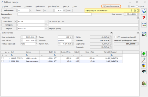 Na formularzu faktury zakupu oraz korekt do niej, na zakładce [Ogólne], dodany został parametr Samofakturowanie. Parametr ten jest aktywny wyłącznie dla dokumentów znajdujących się w buforze.