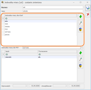 W ustawieniach konfiguracji (Start / Konfiguracja / Firma / Ogólne / Jednostki miary) dostępny jest słownik Jednostka miary dla KSeF. Pozwala on na zdefiniowanie powiązań między różnymi nazwami jednostek stosowanymi przez dostawców a jednostkami zarejestrowanymi w bazie danych.