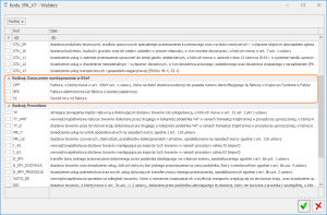 W tej sekcji Użytkownik określa, które informacje z programu mają zostać wyświetlone w polach opisujących poszczególne pozycje (towary lub usługi) na fakturze ustrukturyzowanej: