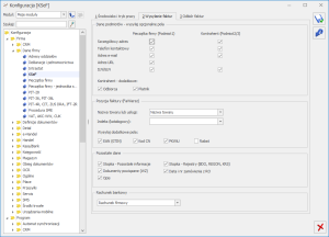 • Stopka – Rejestry (BDO, REGON, KRS) – decydowanie o dołączeniu numerów rejestrowych podmiotu (informacje te nie są przesyłane dla faktur wystawionych w ramach Samofakturowania)