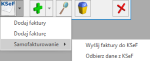 • Wyślij faktury do KSeF – pozwala na przesłanie zaznaczonych dokumentów, które zostały wystawione w trybie samofakturowania.
