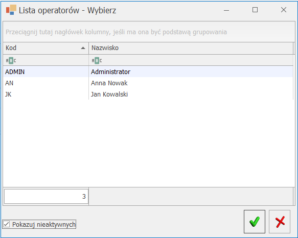 - Nieaktywny – parametr do zaznaczania wzorców niewykorzystywanych.
