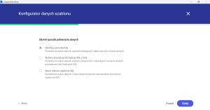 Wybierając opcję edycji definicji wydruku, w pierwszym kroku otworzy się Konfigurator danych