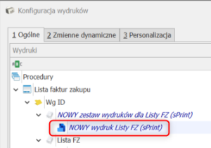 Dodatkowo na liście wydruków w konfiguracji wydruków znajduje się oznaczenie graficzne dla