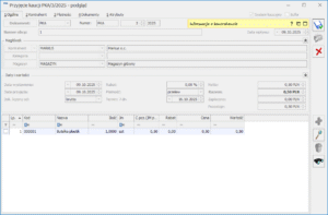 Jeśli na fakturze zakupu znajdował się produkt w opakowaniu objętym systemem kaucyjnym wówczas dokument PKA utworzony zostanie z zaznaczonym parametrem System kaucyjny znajdującym się w prawym górnym rogu.